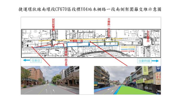 為辦理捷運環狀線南環段CF670區段標Y04車站施工 (南側人行道削減、擋土排樁、管線遷移吊掛),臺北市政府捷運工程局第二區工程處將於115年2月28日起於木柵路1段(70巷〜辛亥路間)實施交通維持並進行圍籬架設,雙向將僅剩各1個車道通行,圍籬架設範圍如附圖。本階段工程施作期程預定自115年2月28 ...更多